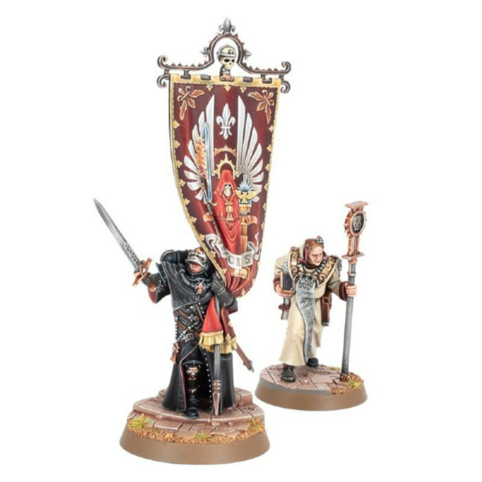 Brandissez l'étendard de la foi et encouragez vos guerrières de l'Adepta Sororitas à redoubler d'ardeur combattante. Dotée d'une relique légendaire, Aestred s'intègre tout naturellement dans votre collection de Sœurs de Bataille, tout en offrant un intéressant sujet de peinture grâce aux diverses textures de la figurine.