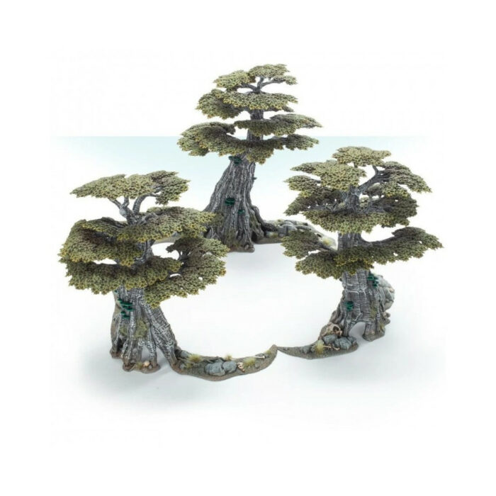 Chaque arbre est conçu avec un socle modulaire spécial qui permet de s'en servir à part en guise de décor épars, ou regroupé en bosquet pour en faire un élément de terrain tactique.