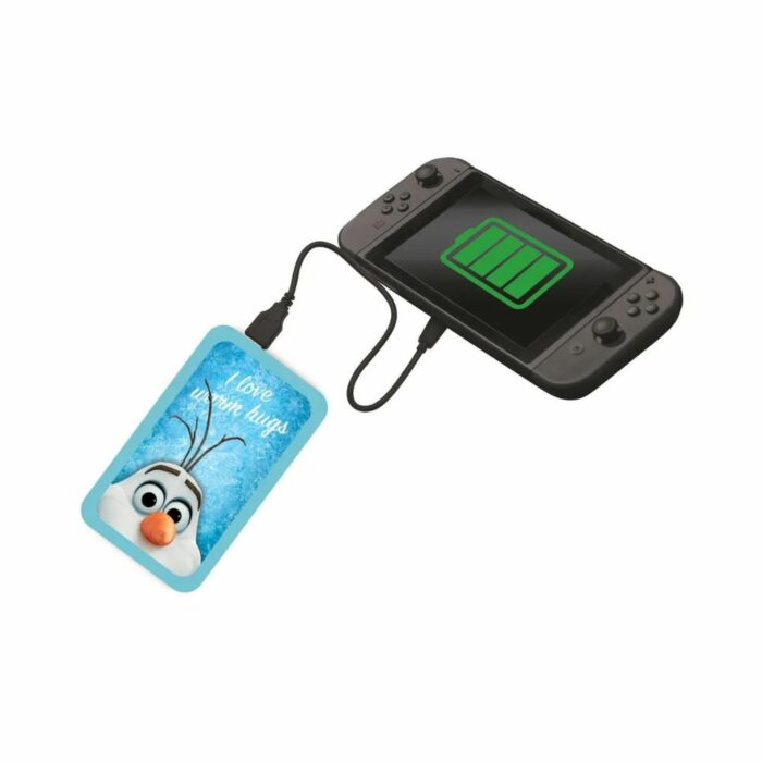 Cette excellente batterie externe peut charger tous vos appareils, y compris les téléphones portables, tablettes, consoles, appareils photo et plus encore.. . . . Avec sa capacité de 4000 mAh, vous pouvez charger votre smartphone deux fois ou charger complètement votre tablette une fois ! . . . . Cette batterie externe a été spécialement conçue pour les enfants et leurs parents. Il est léger et compact et est livré avec des ventouses, de sorte qu'il peut être facilement fixé à n'importe quelle surface Vous pouvez également utiliser les ventouses pour fixer la batterie externe directement à l'appareil en charge.. . . . Avec son beau design Olaf, cette batterie externe ravira tous les fans de La Reine des Neiges ! Vous cherchez une idée cadeau pour un fan de La Reine des Neiges ? Ne cherchez pas plus loin, vous l'avez trouvé.. . . . Spécifications : 4000 mAh – Câble micro USB inclus – Sortie USB : 5 V/1 A avec indicateur d'alimentation LED