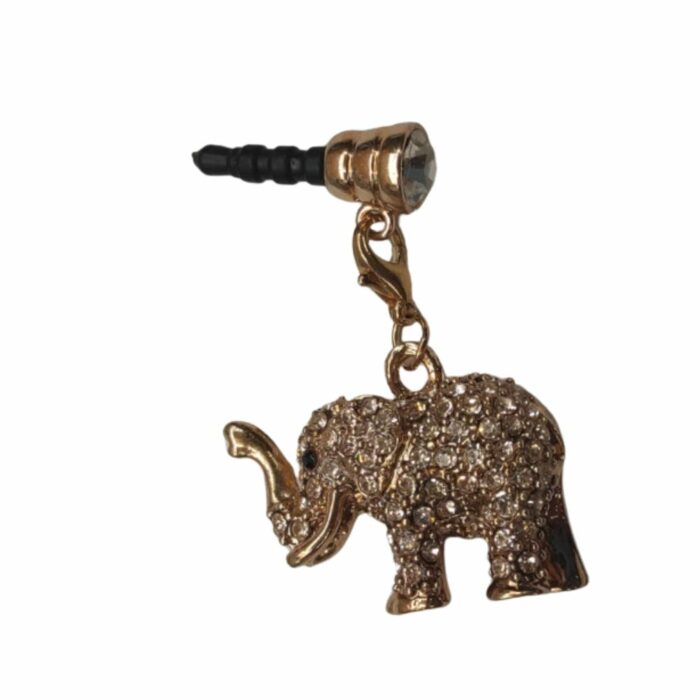 BIJOU TELEPHONE PRISE JACK 3.5MM ELEPHANT GOLD SAMSUNG XIAOMI IPHONE OPPO REDMI