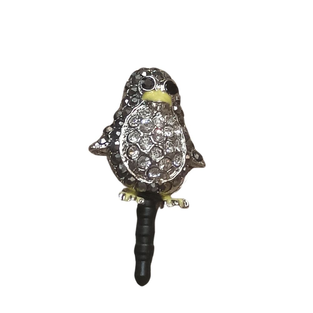 BIJOU TELEPHONE PRISE JACK 3.5MM PINGOUIN NOIR SAMSUNG XIAOMI IPHONE OPPO REDMI