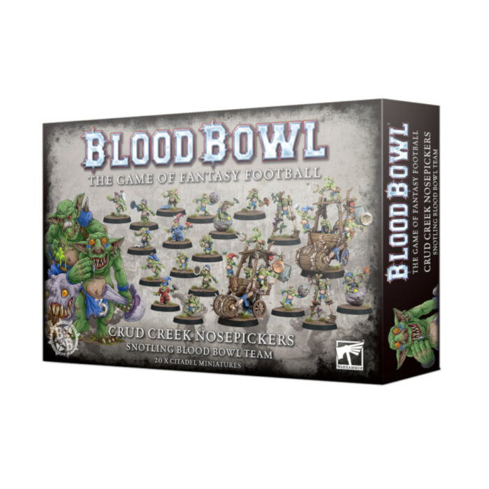 Ce kit plastique contient tous les composants nécessaires pour assembler les Crud Creek Nosepickers, une équipe de Snotlings à l'usage des parties de Blood Bowl.