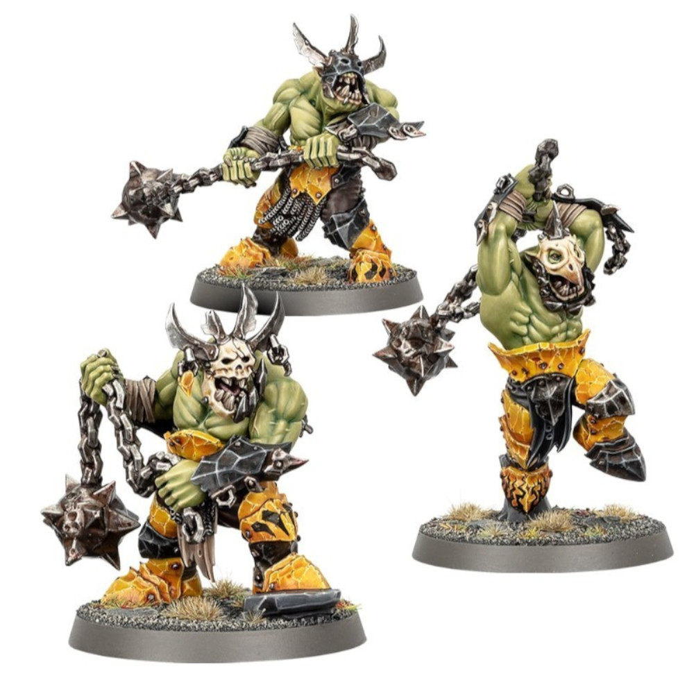 Ce kit plastique permet d'assembler soit trois Rageux Brutes, des berzerks orruks impatients de montrer leur force ou trois Bouzilleurs Bizarbrutes, des berzerks orruks imprégnés de démence magique.