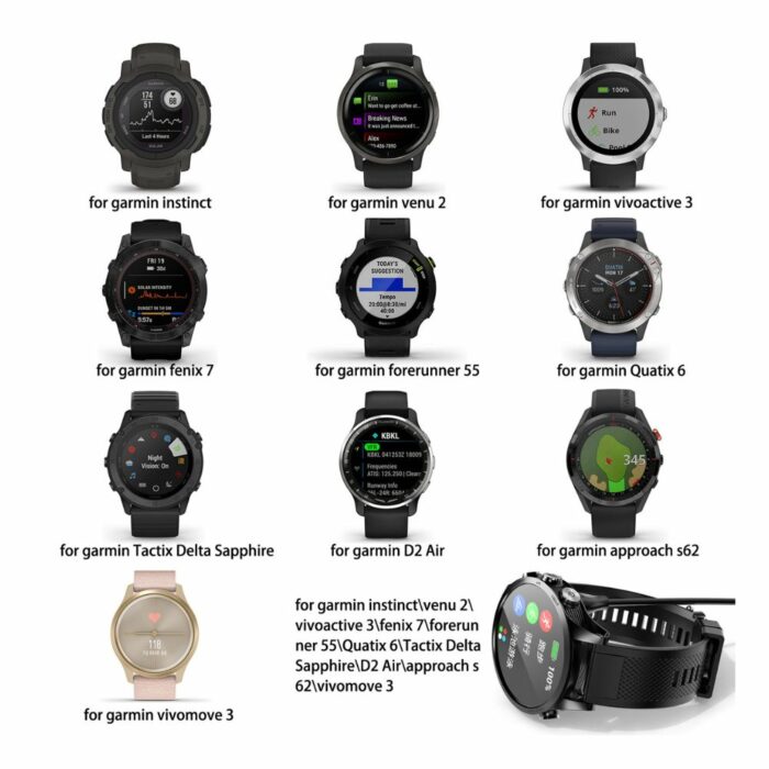Rechargez facilement votre montre connectée Garmin Fenix 8 E 7 7S 7X 6 6S 6X Pro and Sapphire Editions,Fenix 5 5S 5X Plus,Forerunner 935 945 955 965 745 45 45S 165 245 Music 265,Approach S10 S40 S60 X10,Quatix 5,5 Sapphire,Vivoactive 3 Music 4 4S 5,Vivomove 3 3S Style,Vivosport,Venu 3 3S,Venu Sq,Captain Marvel,D2 Charlie,D2 Delta PX,D2 Delta S, Instinct Tactical Edition,Impact Bat Swing Sensor,Tactix Charlie,BarkLimiter 2,2VT,Enduro 1 2 3 Facilité d’utilisation : Connectez simplement le câble USB à un port d’alimentation ou à un adaptateur mural, et rechargez votre montre où que vous soyez. Fabriqué avec des matériaux durables et résistants, garantissant une charge rapide et sécurisée.