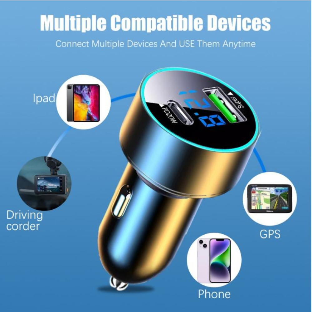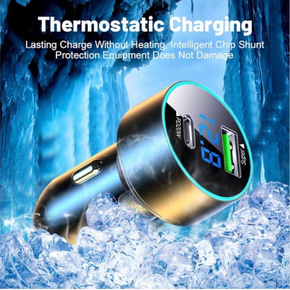 CHARGEUR VOITURE UNIVERSEL 120W AVEC DEUX PORTS USB-A ET USB-C ET INDICATEUR LED