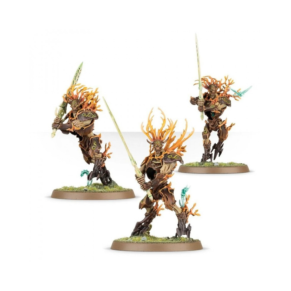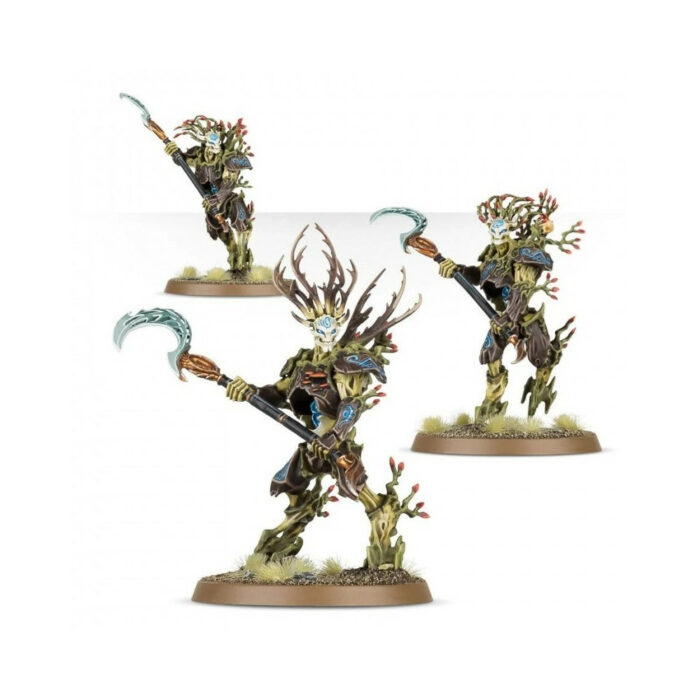 Ce kit plastique contient toutes les pièces nécessaires pour assembler trois Chasseurs de Kurnoth (Kurnoth Hunters), armés au choix de longues épées, de faux et de grands arcs.