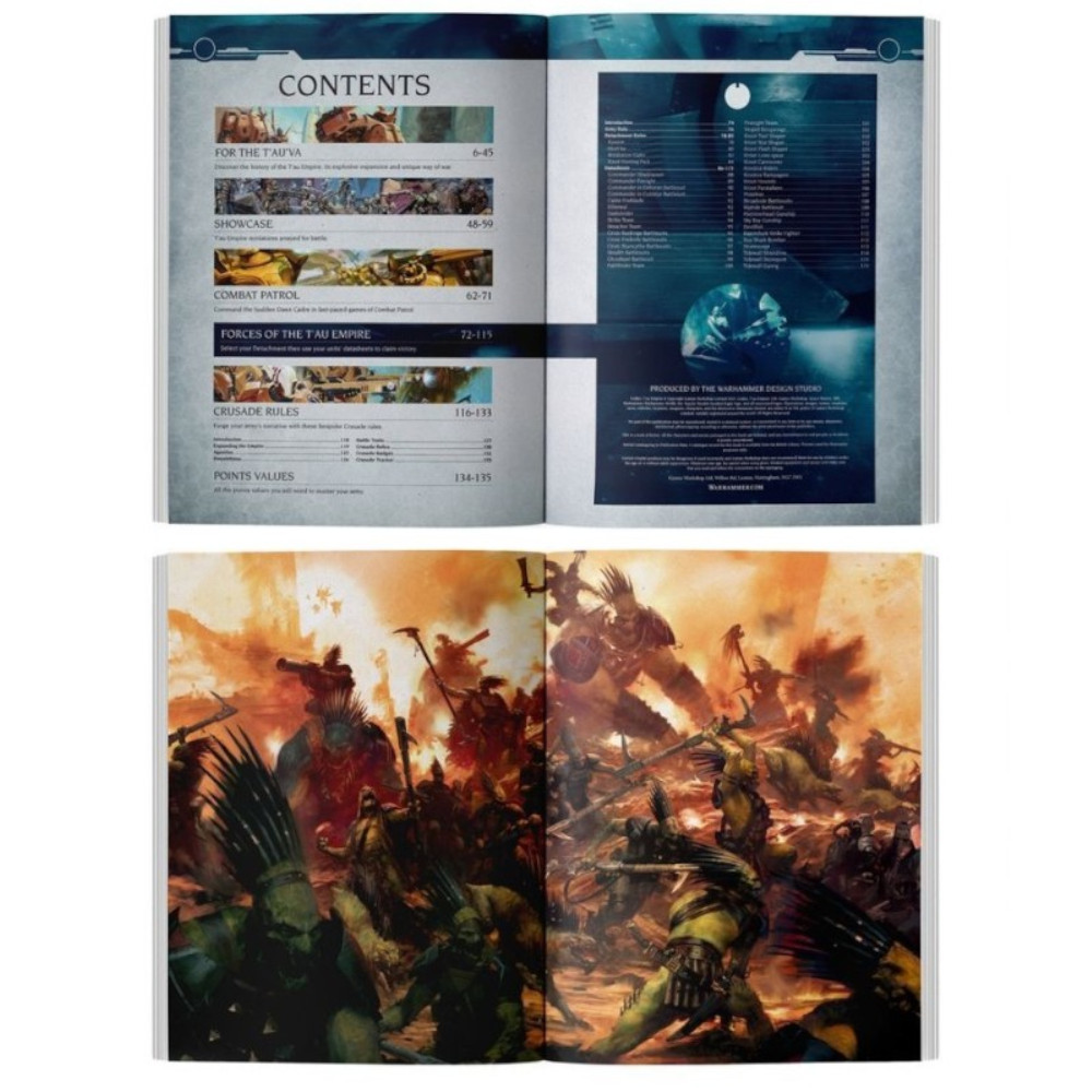 This book also contains a one-use code to unlock Codex: T'au Empire content in Warhammer 40,000: The App