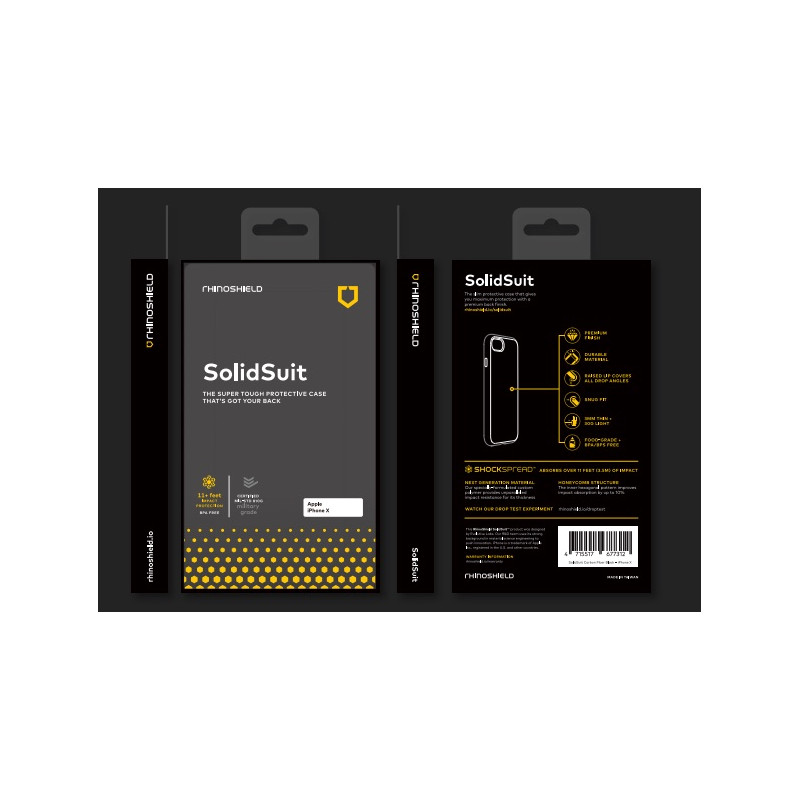 La coque que s'arrachent tous les YouTubeurs ! En un mot : Une coque fine à la finition premium pour une protection maximale. Droptest à 3,5m / Ultra-léger 30g La gamme SolidSuit est une révolution sur le marché des coques. Rhinoshield a moulé avec précision sa technologie ShockSpread™ dans une coque monobloc et y a ajouté une finition haut de gamme. Découvrez la technologie exclusive ShockSpreadTM, mélange de polymères innovant, permet d’absorber les impacts d’au moins 3.50 mètres, surpassant les standards militaires américains de tests de chutes