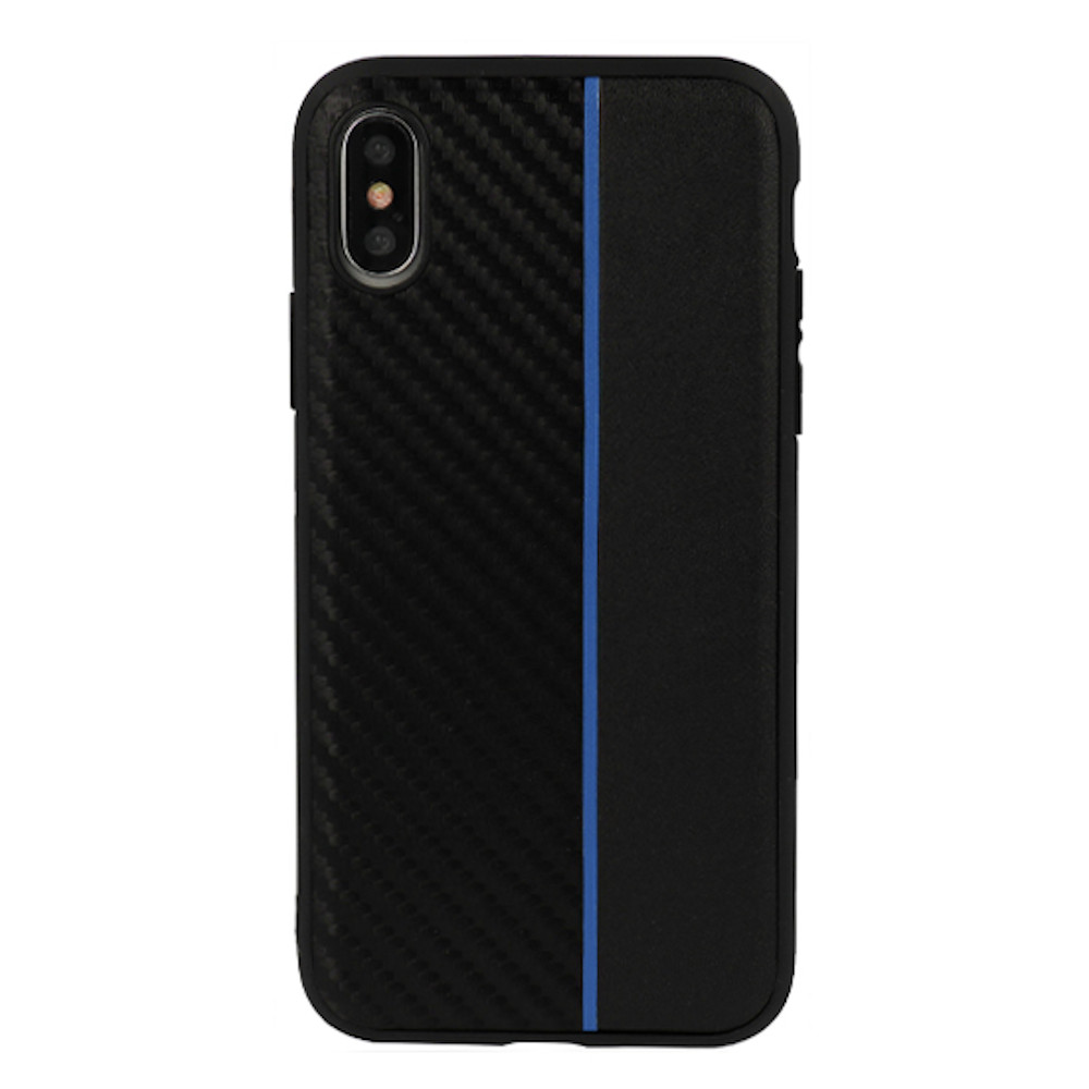 COQUE RIGIDE BI-MATIERE CARBONE TRAIT BLEU POUR HUAWEI Y5 2018 HONOR 7S NOIR