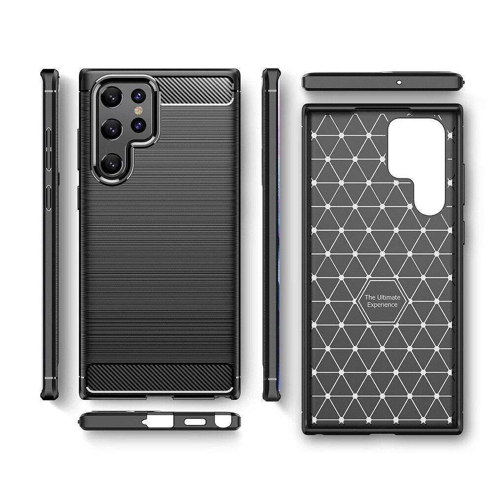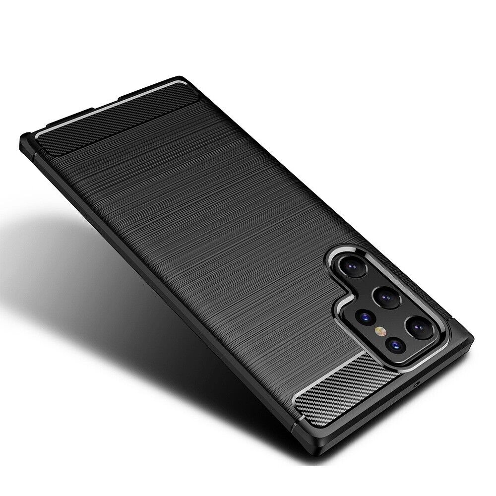COQUE SILICONE EFFET CARBON ALU BROSSE POUR SAMSUNG GALAXY S23 ULTRA S918 NOIR
