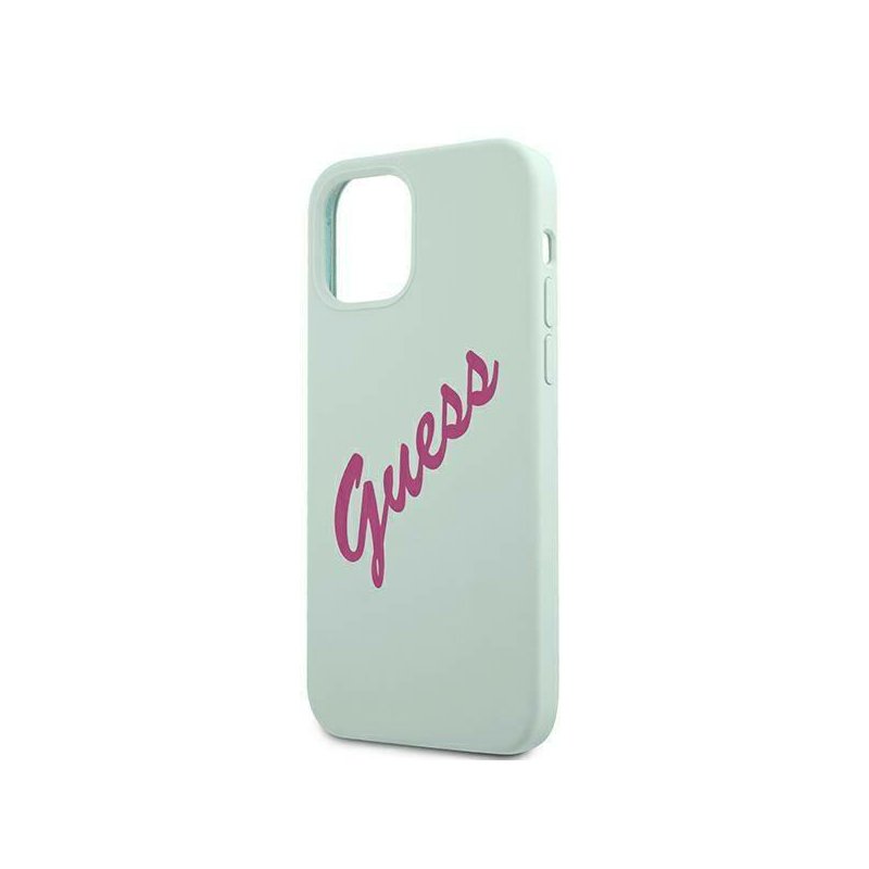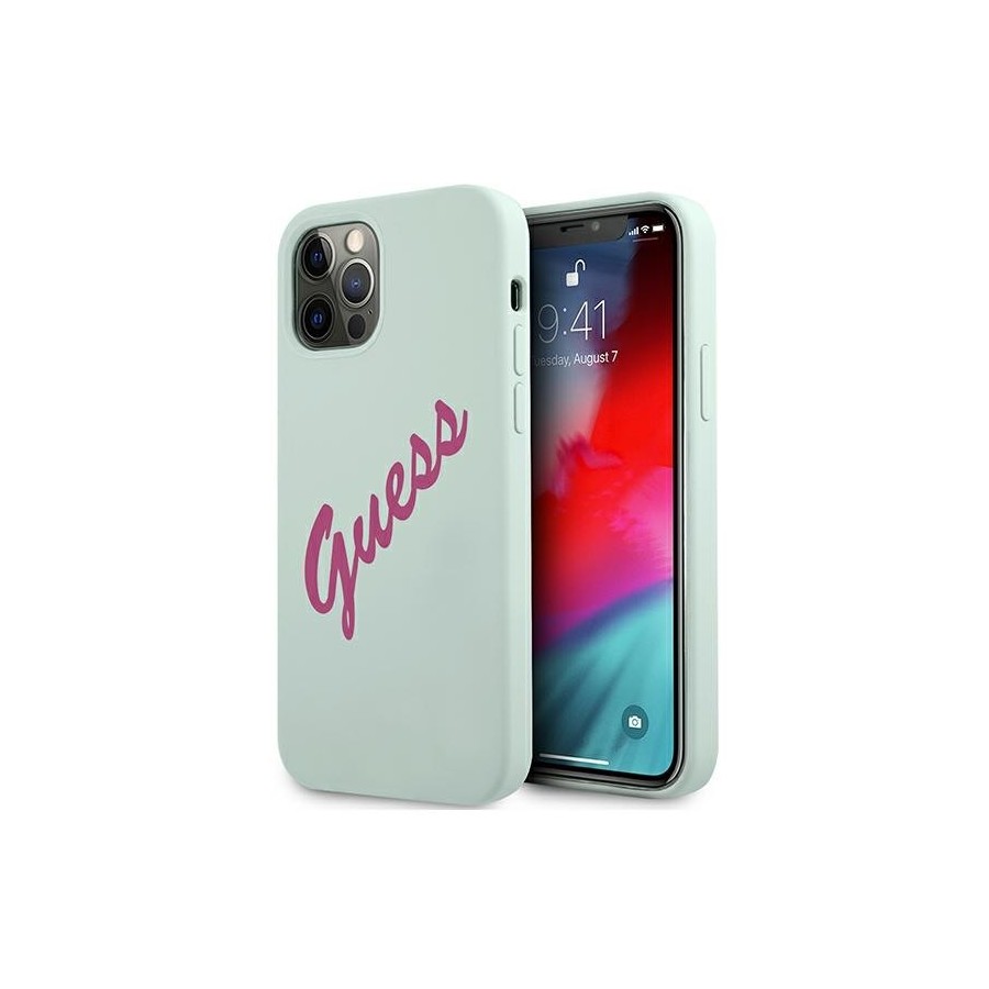 COQUE SILICONE SOUPLE GUESS LOGO ROSE FUSCHIA POUR APPLE IPHONE 12 PRO MAX BLEU