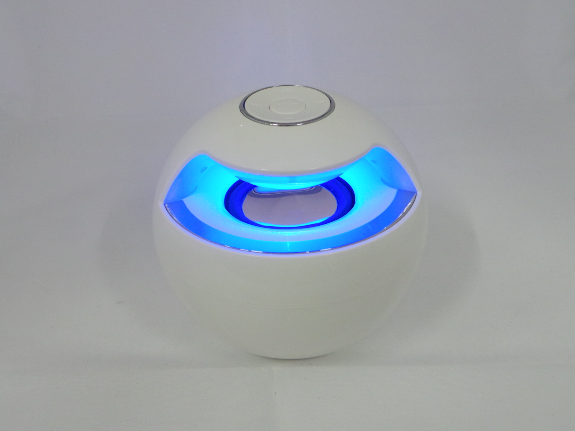 Mini Enceinte en Bluetooth, lumineuse Puissance : 3w Décibels :3db Diam environ 95mm- POIDS 216 G Portée environ 10m Pour IPHONE , IPOD et tout appareils ayant le Bluetooth. Rechargeable avec cordon USB fournit