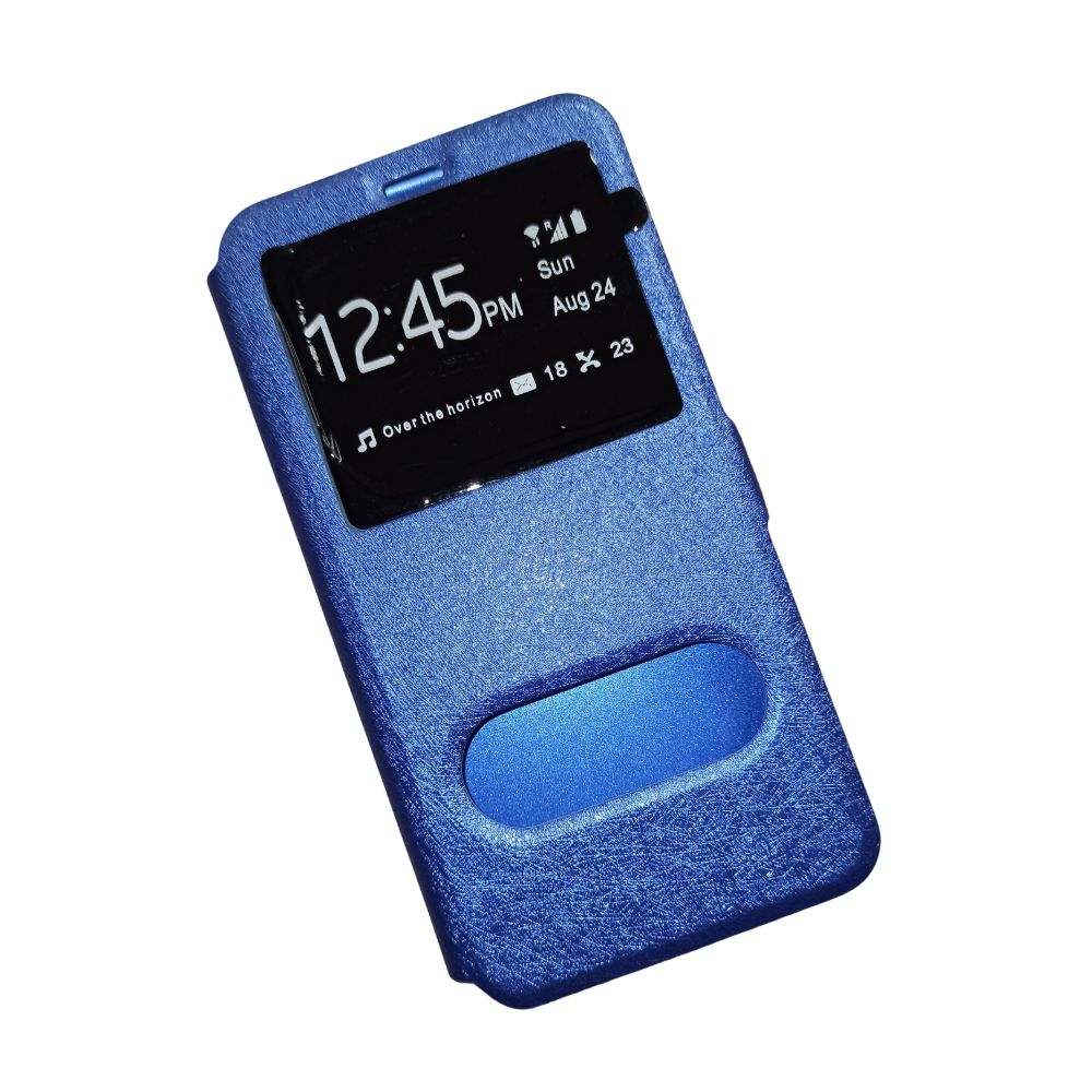 Protection de téléphone avec deux fenêtres permettant de voir l'heure et de décrocher quand vous recevez un appel. Cette protection protégera votre appareil contre les chocs du quotidien. attention la couleur du rendu de la photo est inexacte. La couleur réelle est plus sur le violet. Pas de réclamation possible.