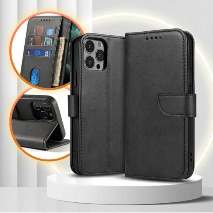 ETUI FOLIO HOUSSE MAGNET ELEGANCE POUR APPLE IPHONE 15 PLUS NOIR