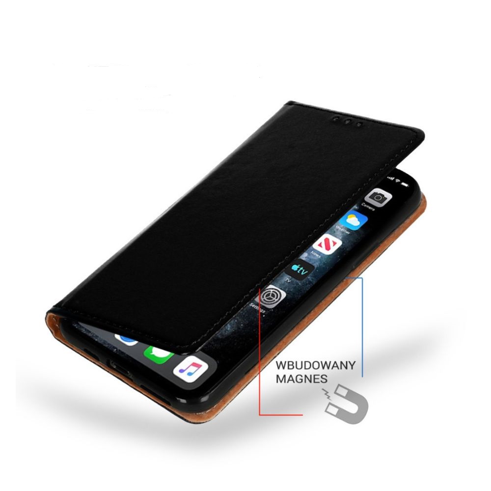 L'étui folio magnet cuir est un folio pour ceux qui attachent de l'importance à l'élégance et à la commodité. La coque offre une protection totale du téléphone grâce au dos recouvert. Le boîtier est en cuir naturel, qui a été cousu pour le renforcement. L'affaire a toutes les découpes nécessaires. Le téléphone est placé dans une fixation flexible et résistante aux chocs qui protège le téléphone.
