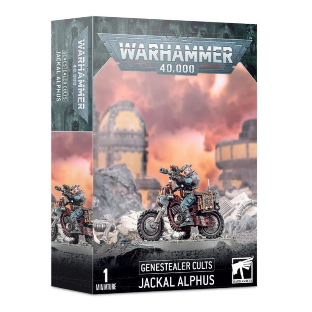 Le Jackal Alphus est un chef tout trouvé pour une armée mécanisée des Genestealer Cults, prêt à prendre la tête de colonnes d'Atalan Jackals ou de Goliath Trucks sur sa moto tout-terrain. Avec son fusil de sniper Jackal, ce personnage peut s'en prendre aux champions ennemis, et son aptitude Cible Prioritaire Repérée vous permet de désigner des unités adverses pour procéder à leur destruction, en rendant le tir des Genestealer Cults plus précis à leur encontre.