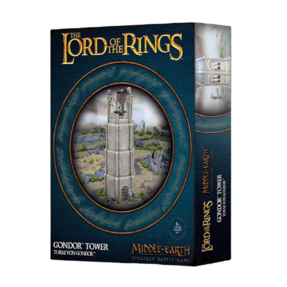Ce kit plastique permet d'assembler une Gondor Tower, une puissante flèche de pierre robuste, avec des portes en bois renforcées de fer.