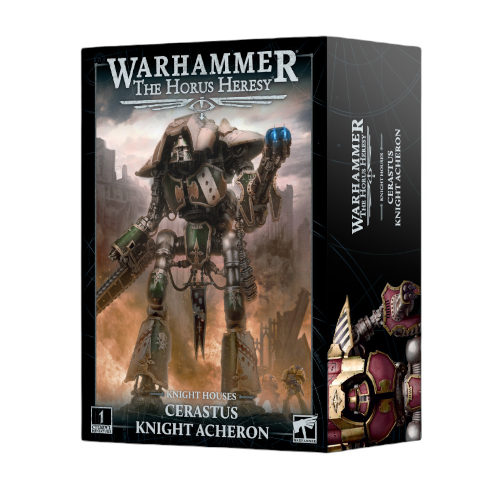 Plus grand encore que ses cousins de classe Questoris, le Chevalier Achéron arpente le champ de bataille en déchaînant des déluges de flammes funestes à l'aide de son canon Flamestorm monté sur le bras et en découpant les ennemis les plus résistants à coups de son cruel poing tronçonneur Reaper.