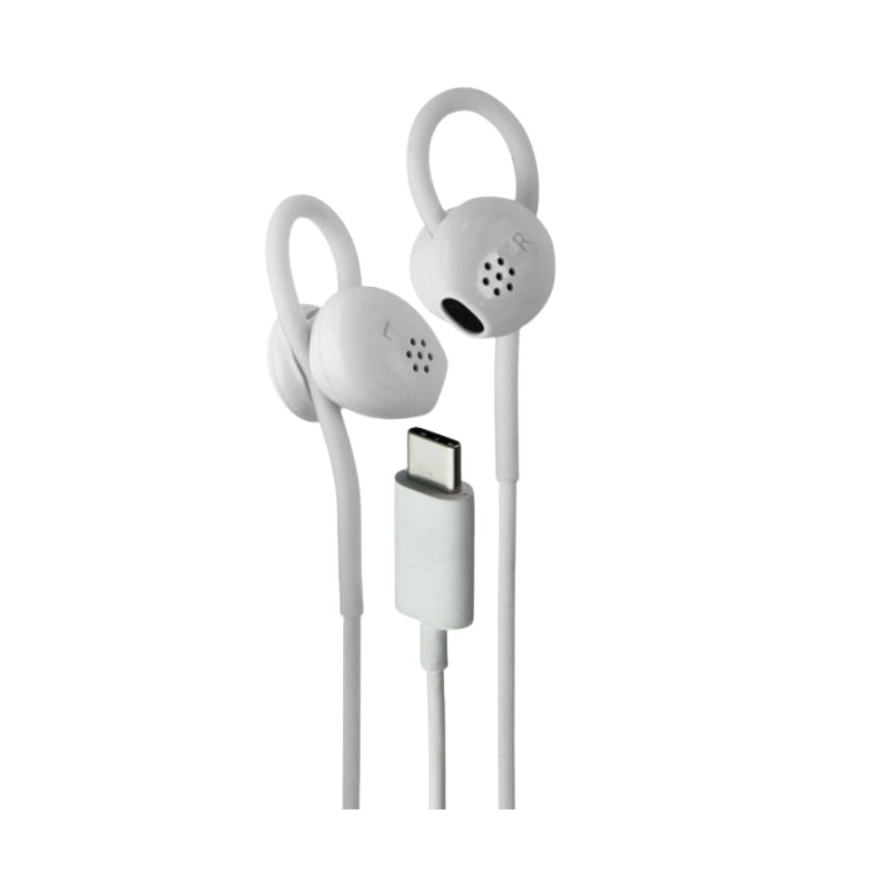 KIT PIETON ECOUTEURS HEADSET GOOGLE G019A TELECOMMANDE PRISE USB-C BLANC