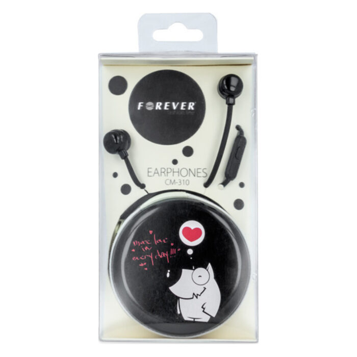 Les écouteurs Forever personnage chien sont le complément parfait de votre smartphone, tablette ou lecteur de musique. Ils sont équipés de casques de haute qualité, ils sont petits en poids et en taille, ils sont très confortables même pendant les activités sportives. Vous pouvez vous connecter à votre appareil avec une prise jack 3,5 mm standard. Les écouteurs sont équipés d'un microphone intégré, à travers lequel vous pouvez recevoir ou terminer un appel et un mécanisme de bande. Fourni avec sa boite de rangement zippé.