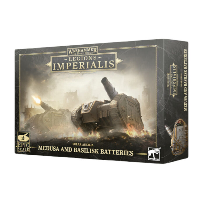Ce kit permet d'assembler une colonne de huit chars d'artillerie à l'échelle epic pour offrir un appui feu à vos armées des Solar Auxilia dans les parties de Legions Imperialis.