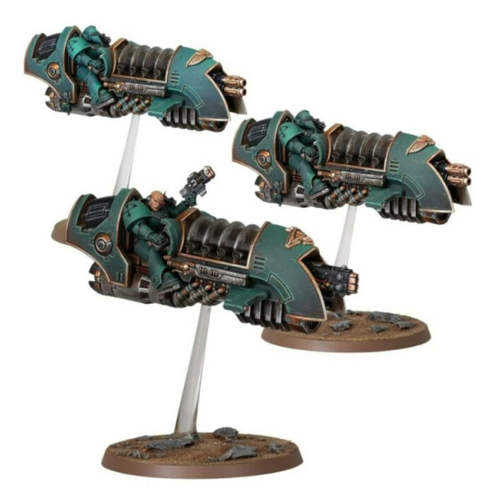 Les Veneurs Célestes sont des unités de frappe craintes pilotant des motojets puissantes et sophistiquées. Ces véhicules à grande vitesse ressemblent plus à des aéronefs compacts qu'à des motos terrestres. Propulsés au-dessus du champ de bataille par des réacteurs à assistance antigrav, ils peuvent maintenir une vitesse extrême pendant de longues périodes tout en volant à basse altitude. La puissance de levage des motojets leur permet de transporter un Space Marine et son équipement, ainsi que diverses montures d'armes lourdes et des stocks de munition, ce qui confère aux Veneurs Célestes une grande puissance de feu mobile.
