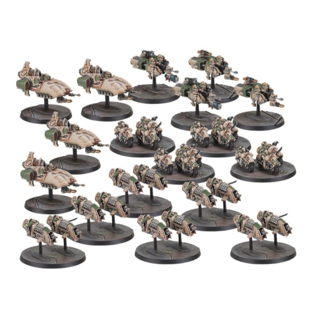 Vous trouverez des Javelin et des Land Speeders plus petits avec divers choix d'armes, ainsi que des motos Outrider et des motojets Scimitar.