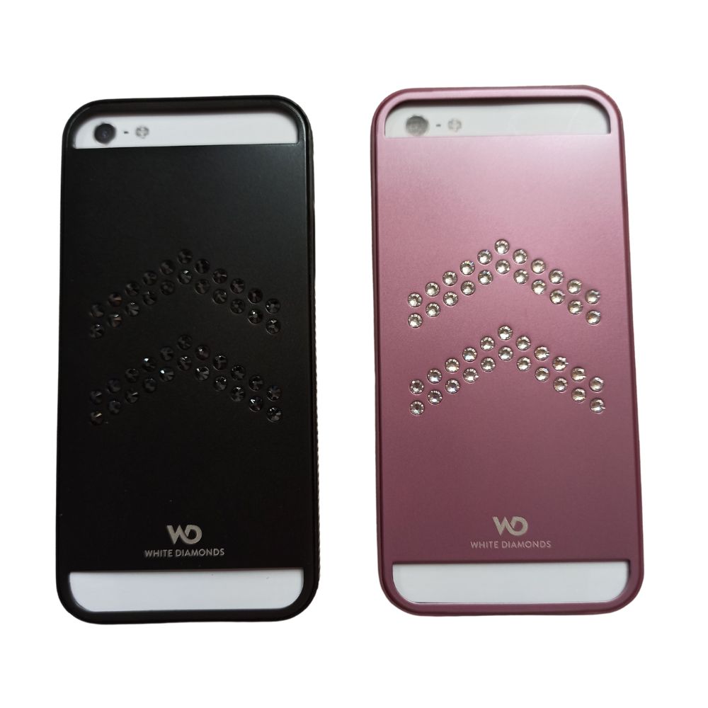 LOT DE 2 COQUES WHITE DIAMONDS METAL AVIATOR POUR APPLE IPHONE 5 5S SE 2016 NOIR