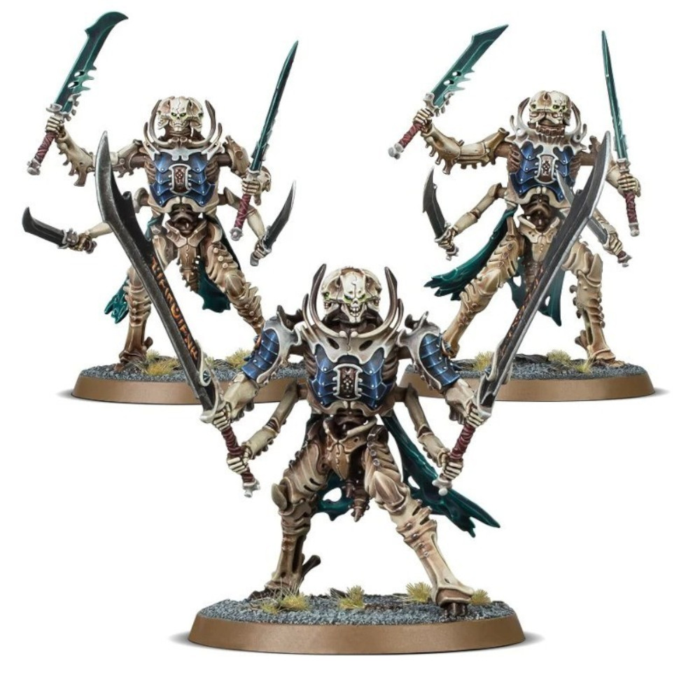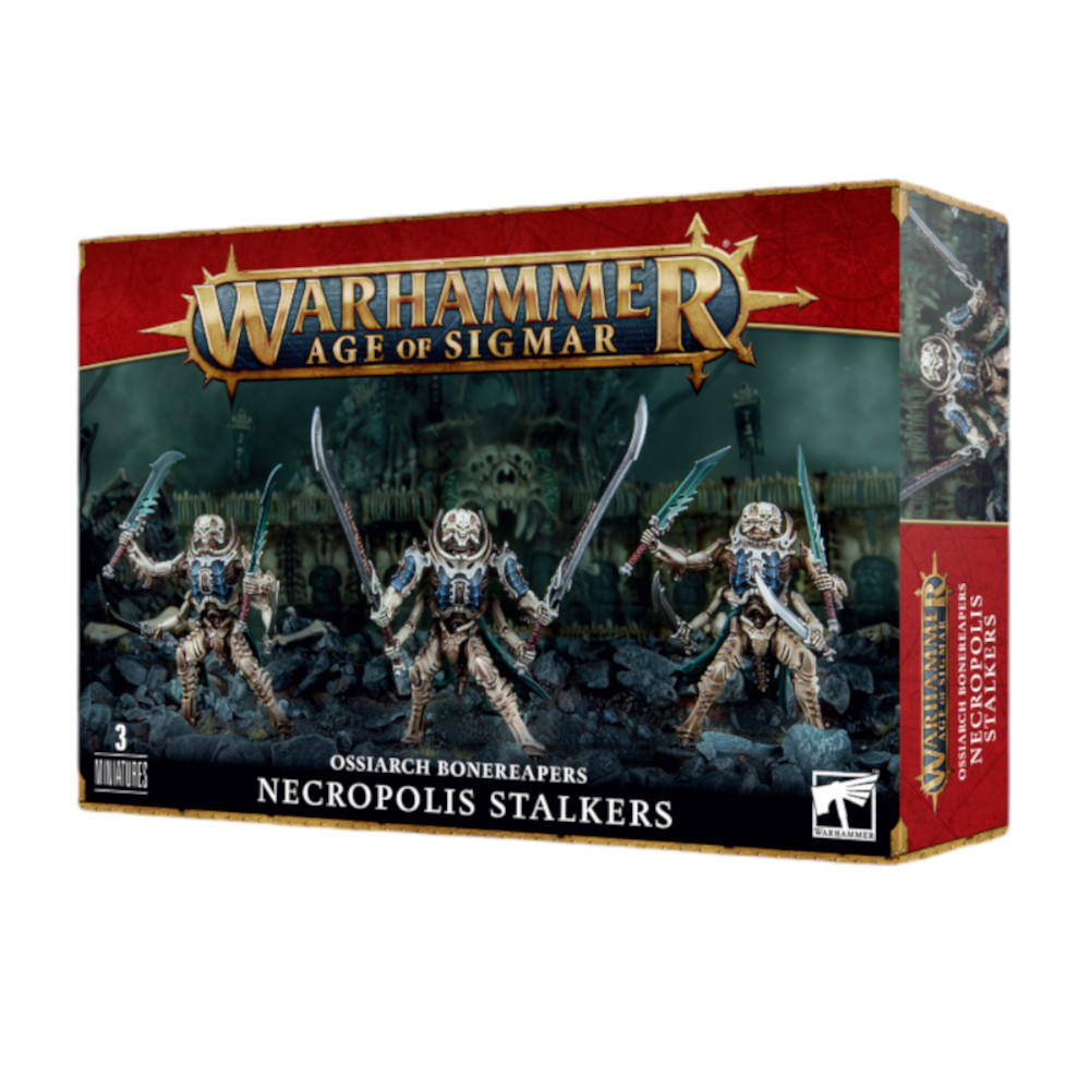 Ce kit plastique permet d'assembler 3 Rodeurs de la Nécropole (Necropolis Stalkers), fournis avec 3 socles ronds Citadel de 50mm.