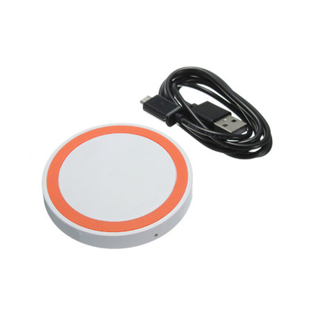 SUPPORT QI CHARGEUR INDUCTION SANS FIL ROND COULEUR BLANC ORANGE PLUS CABLE