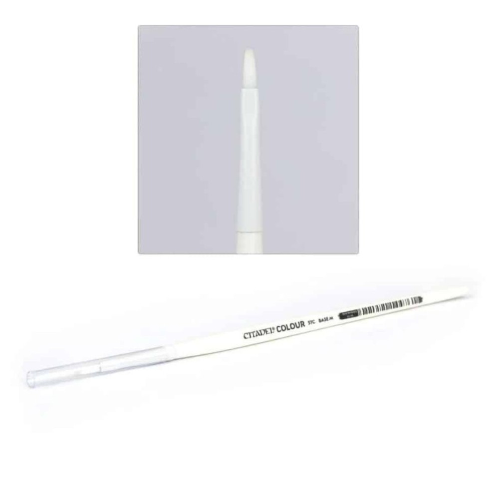 Le pinceau Citadel Colour STC M Base est l'outil à tout faire idéal pour les hobbyistes débutants aussi bien que vétérans, avec sa forme aplatie et arrondie propice aux couches bien propres que nécessitent les couleurs Citadel Base. En utilisant le pinceau par le côté étroit, on trace facilement des lignes et des détails nets, ce qui simplifie les retouches des endroits peu accessibles et contribue à donner un rendu impeccable.