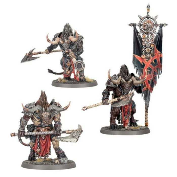 Ce kit contient également les éléments nécessaires pour assembler l'une des figurines comme champion Thorakon avec un umbo unique, et les deux autres comme un fier Porte-étendard et un Sonneur de Charge tenant un cor.