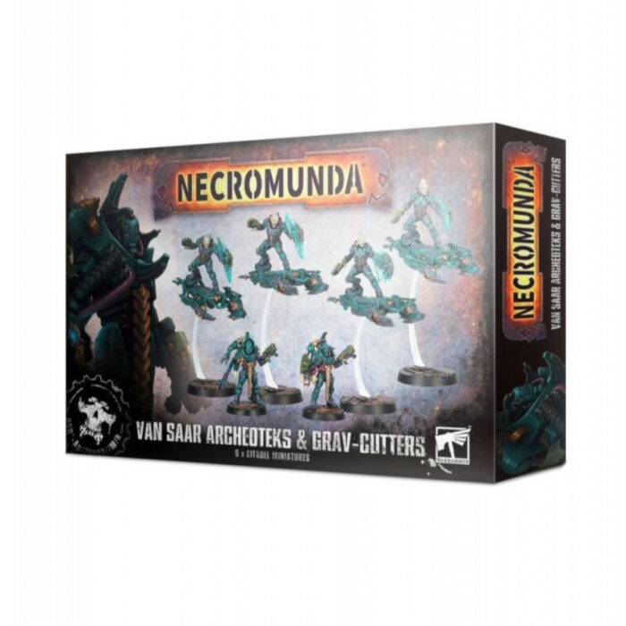 Enrichissez votre gang Van Saar avec ces six combattants. Les Archeoteks sont les Champions Van Saar nantis de la meilleure technologie du clan. Une de leurs figurines est munie d'un dangereux irradiateur, l'autre d'un arachnarnais ésotérique. Les Neoteks, pour leur part, volent sur cotre antigrav. Ils sont tous munis d'un pistolet laser et d'un bouclier à énergie, et le kit propose quatre têtes différentes.